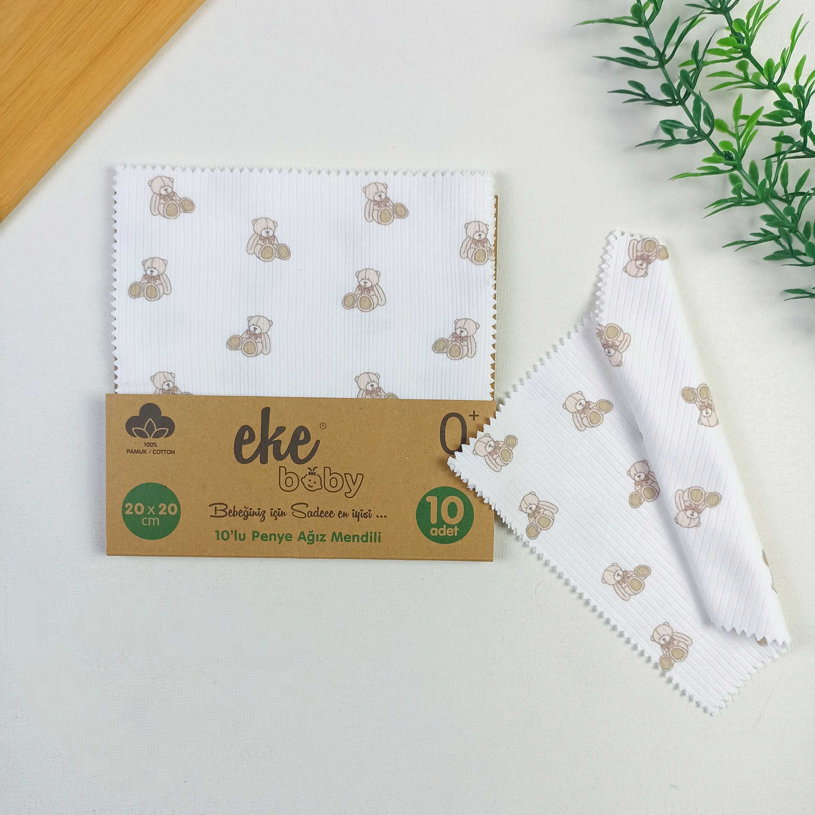 Bear Organic Bebek Mendili / 10'lu Set / 20 x 20 cm