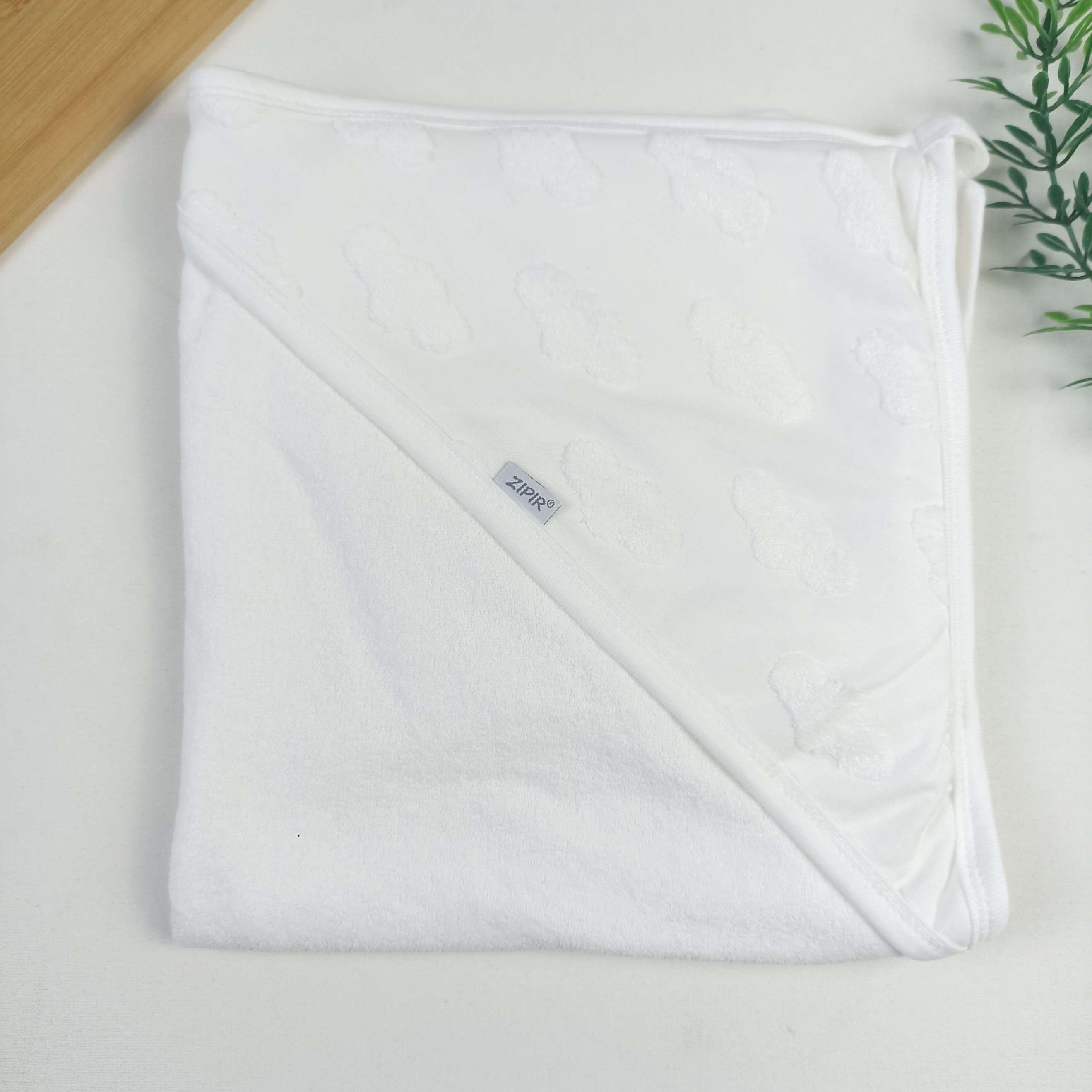Beyaz Bulut Kapüşonlu Havlu / 80x85 cm / Çift Katlı