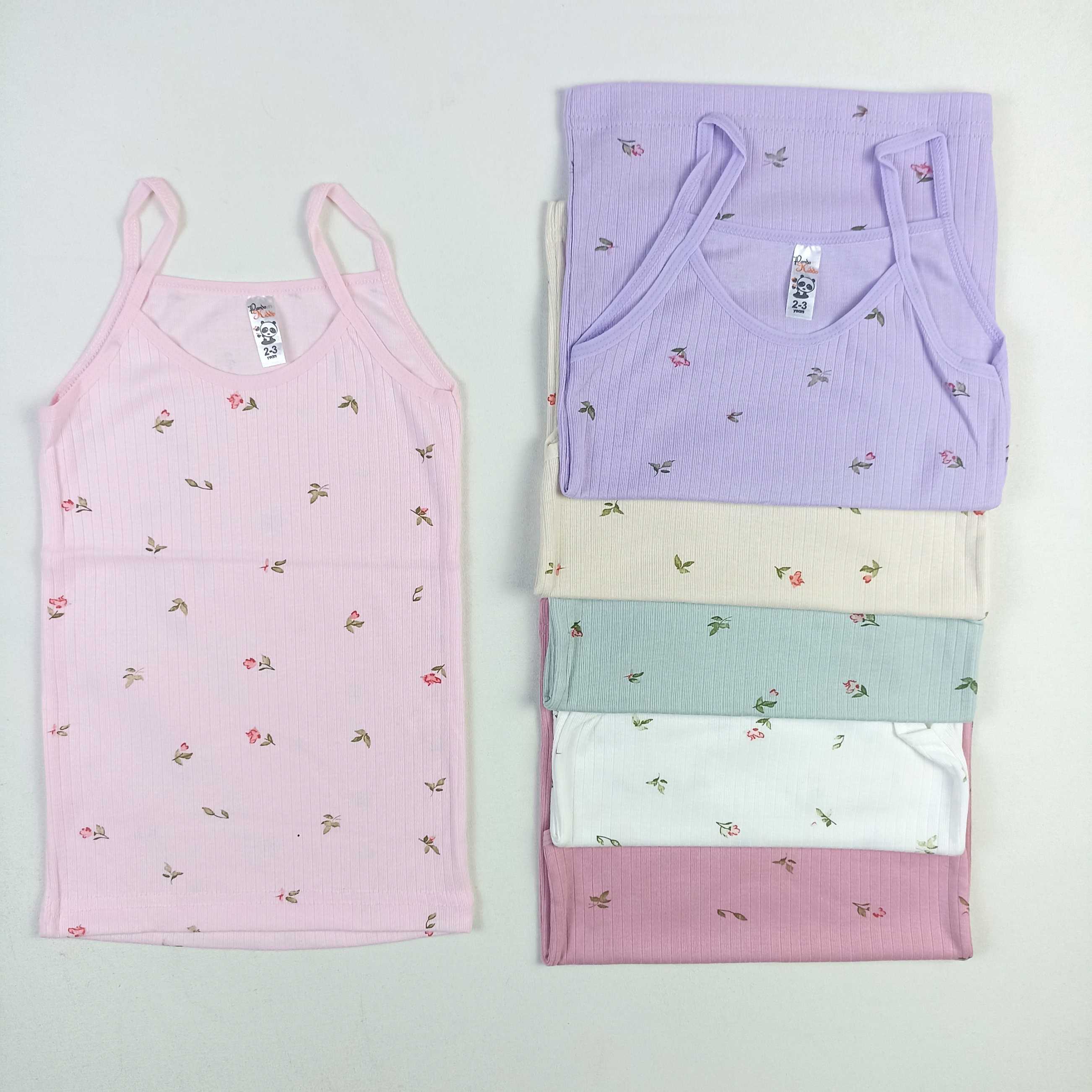 Desenli İp Askılı Kız Atlet / 6'lı Set