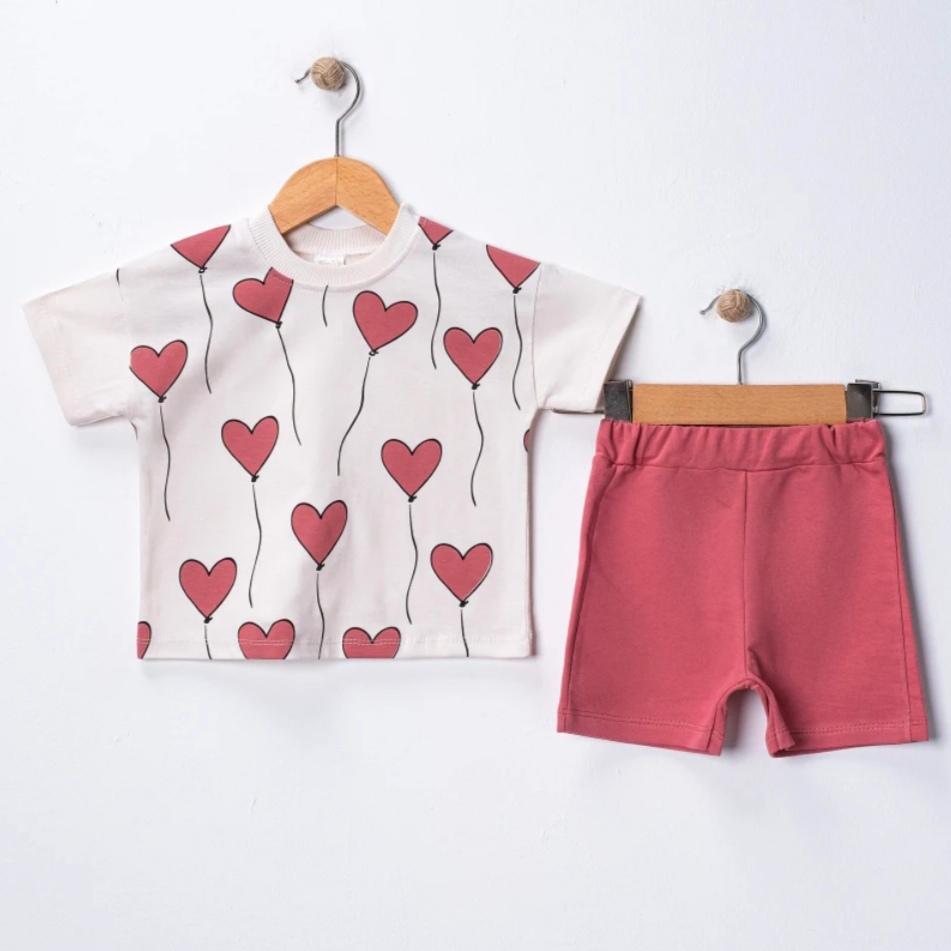 Kalp Desen Şortlu Takım