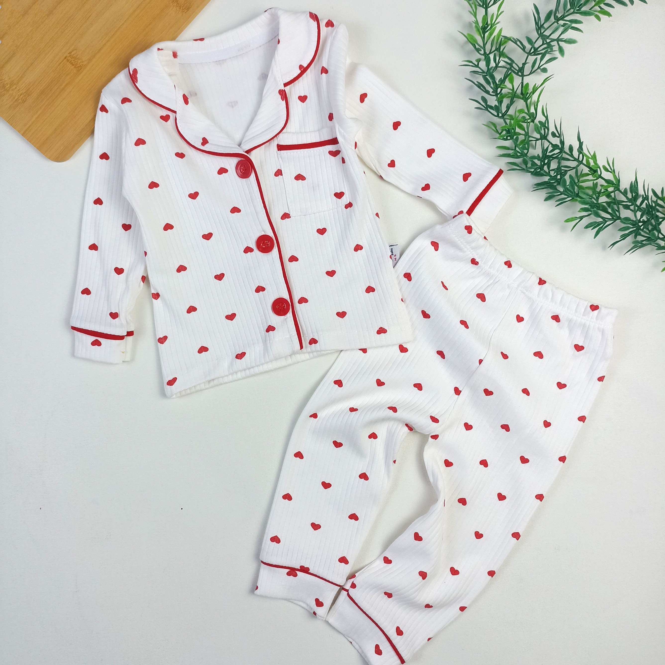 Kalp Desen Yakalı Pİjama Takımı