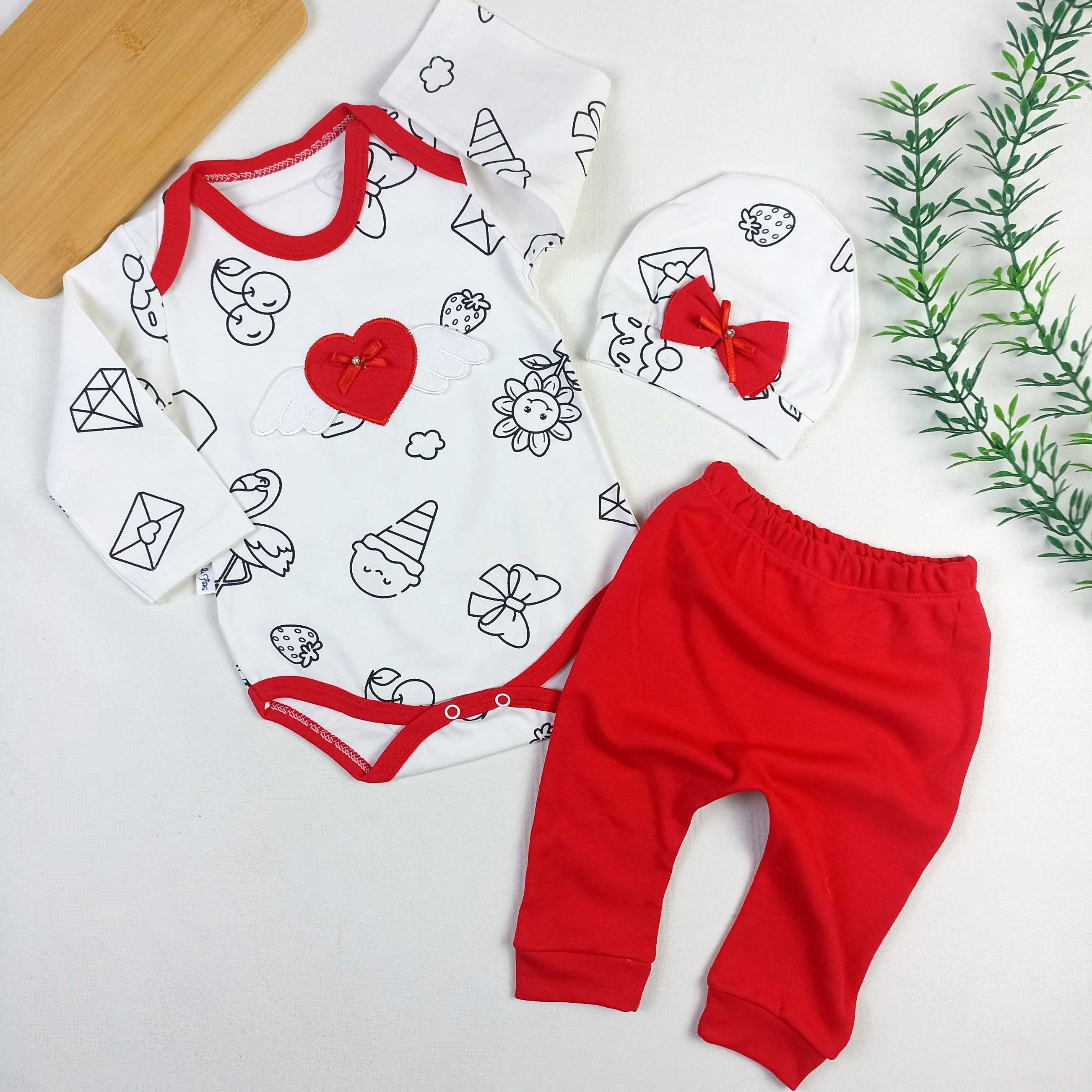 Kalp Şapkalı 3 Parça Takım