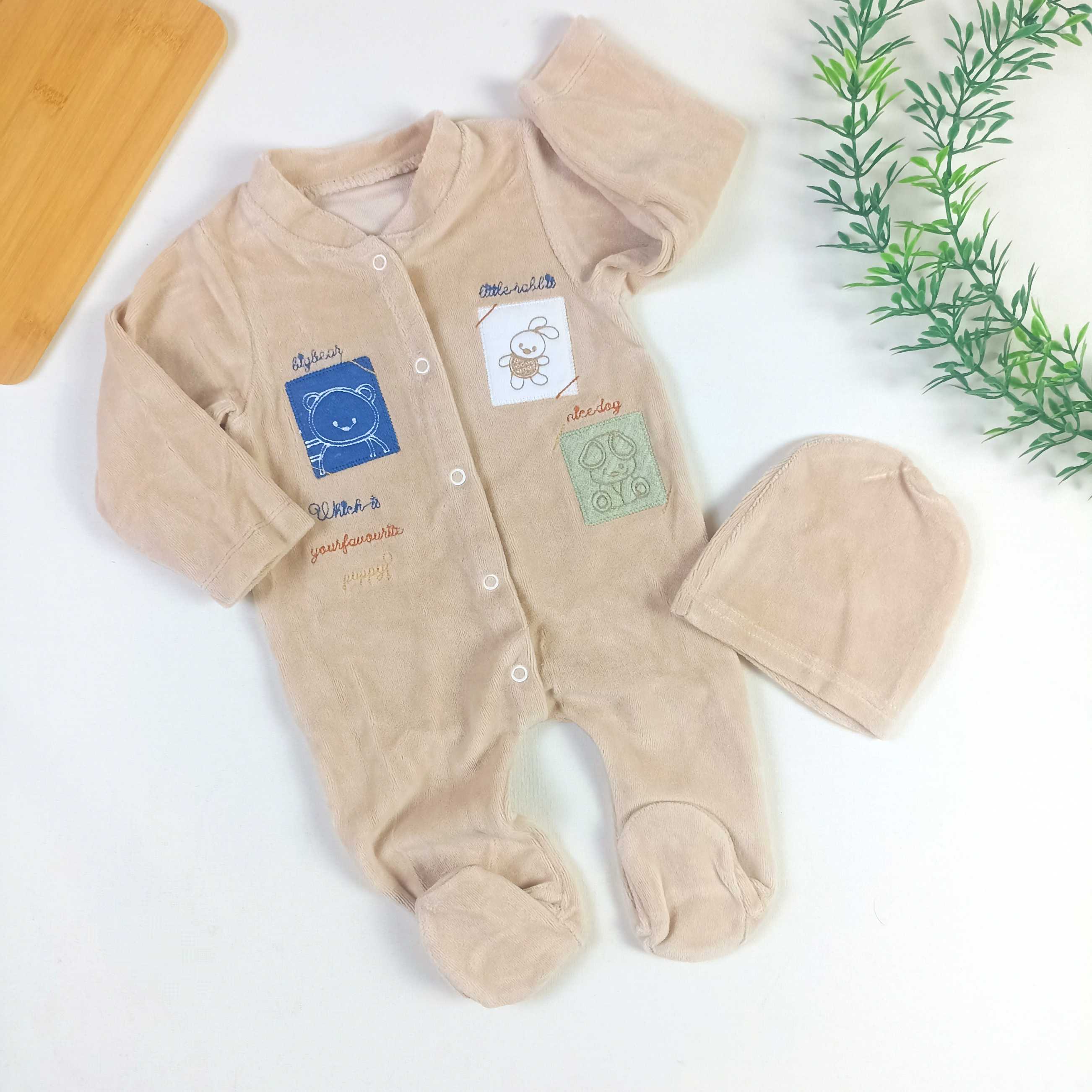 Little Bear Şapkalı Kadife Tulum