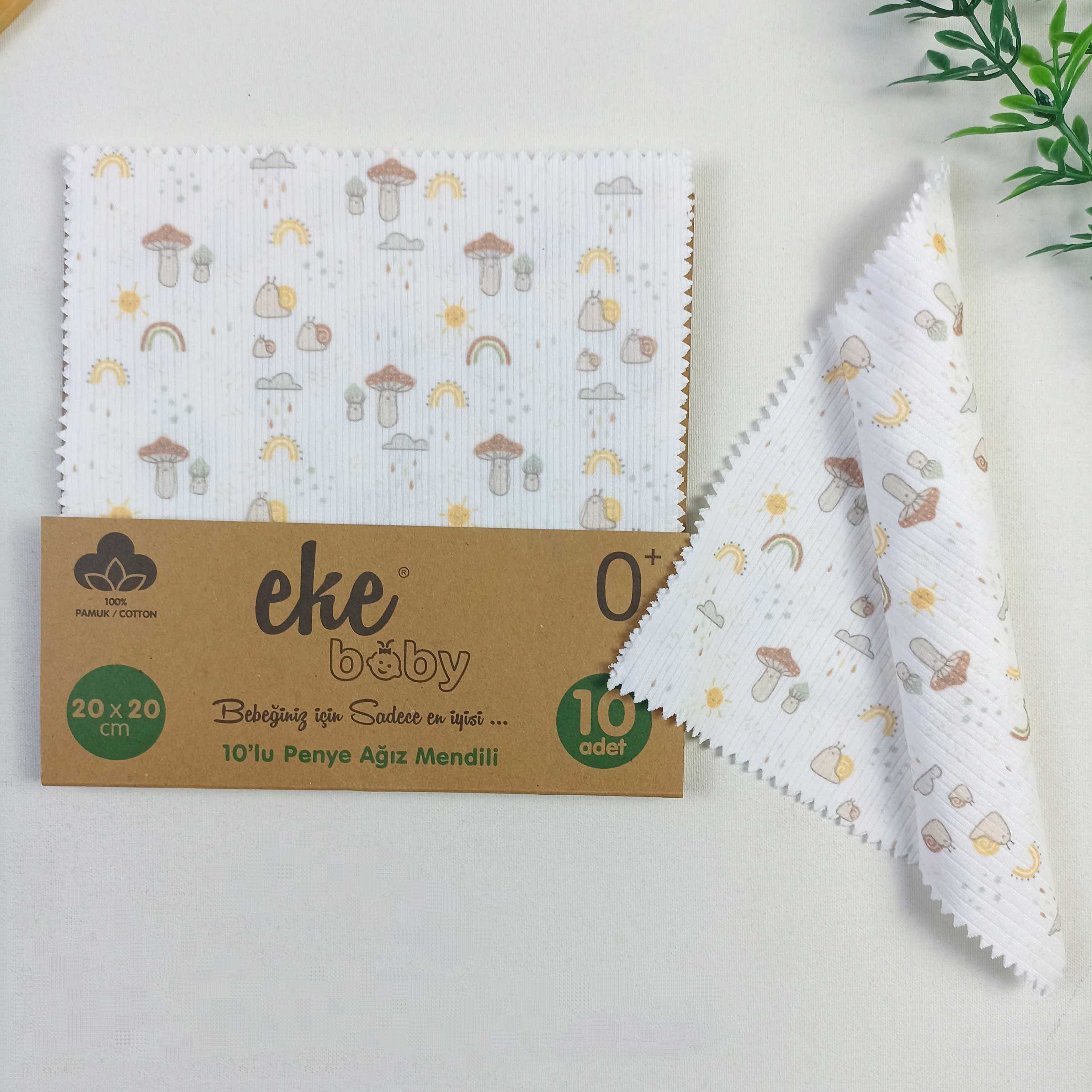 Mantar Organic Bebek Mendili / 10'lu Set / 20 x 20 cm