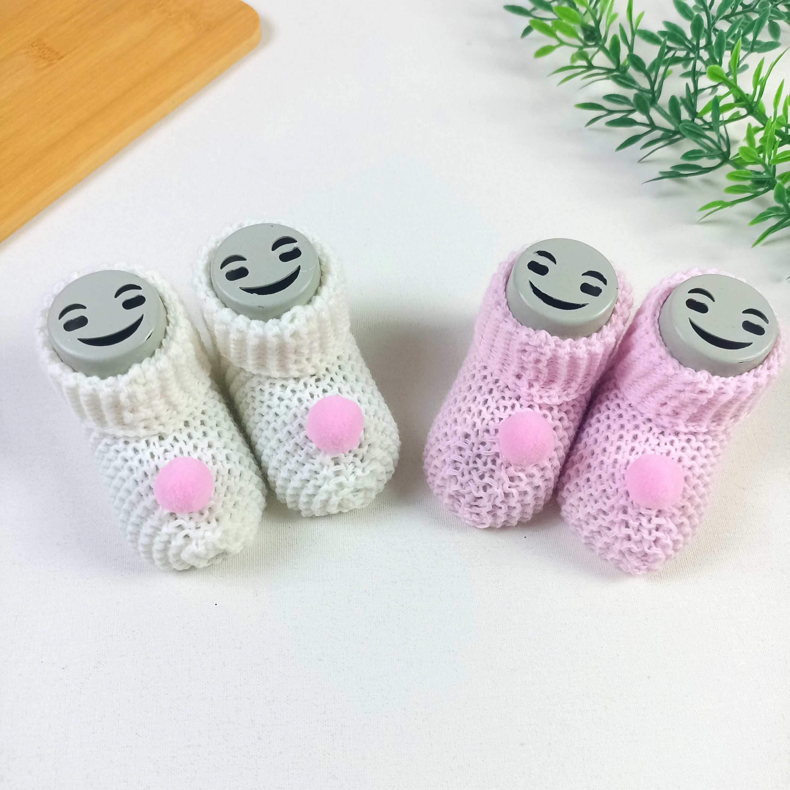 Ponponlu Örme Çorap / 0-3 Ay Tek Beden