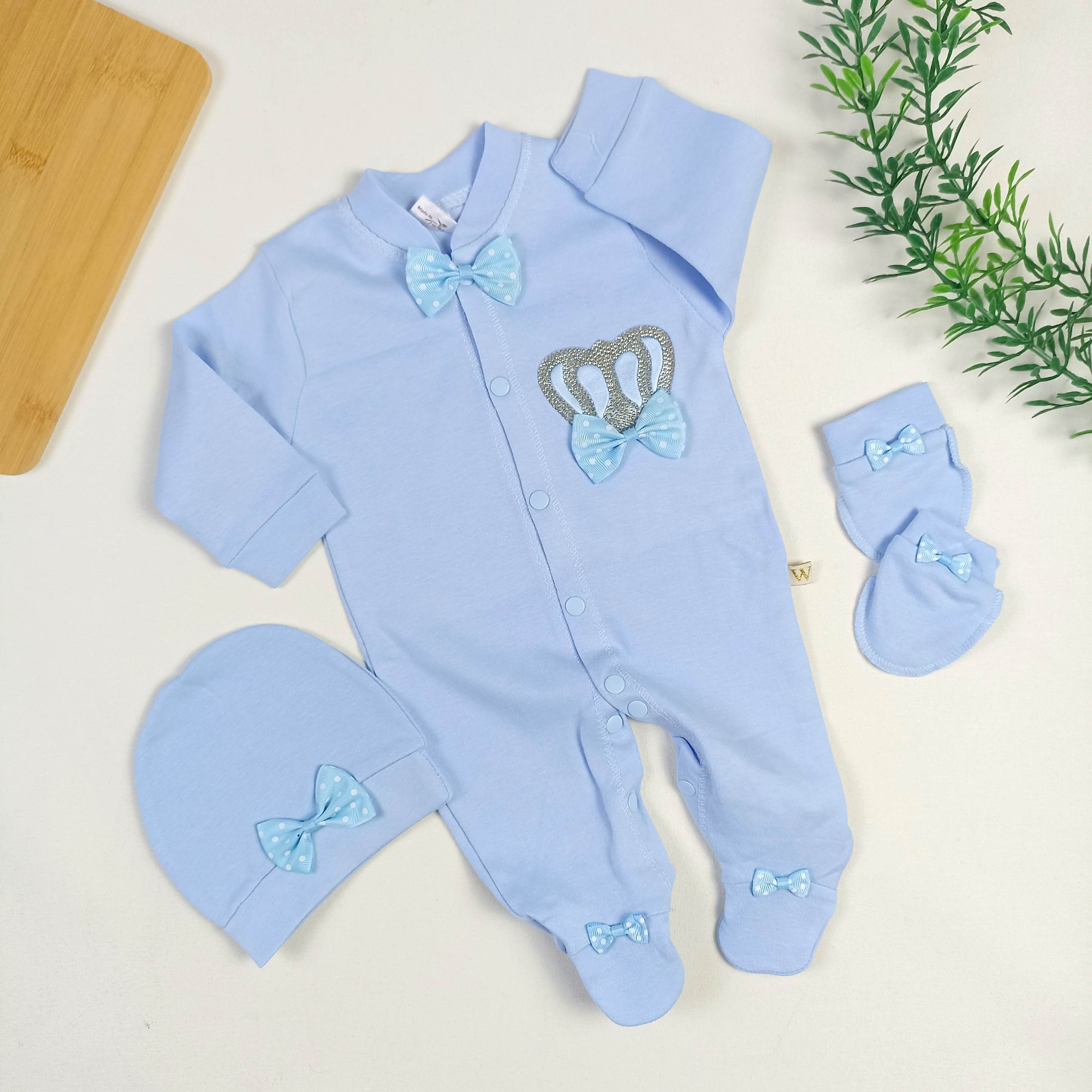 Kullanılan çıtçıt ve aksesuarlar bebek tenine uygun, antialerjik malzemelerden seçilmiştir.